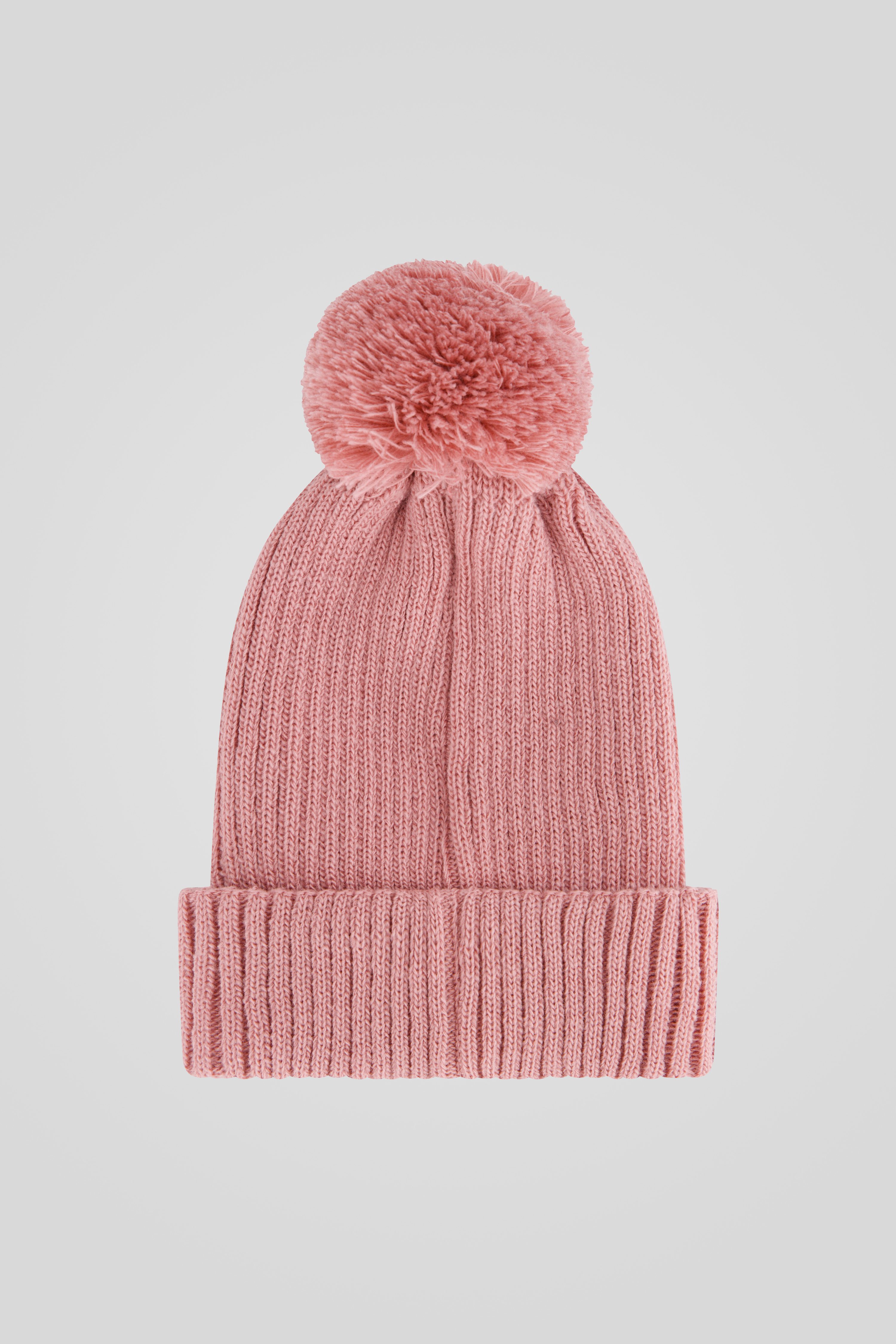 Cappello in maglia rosa con ponpon