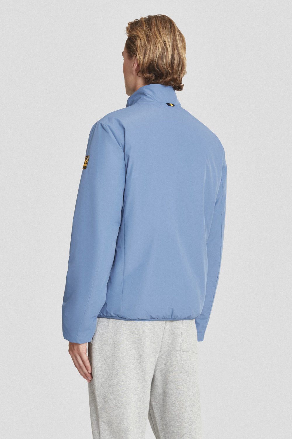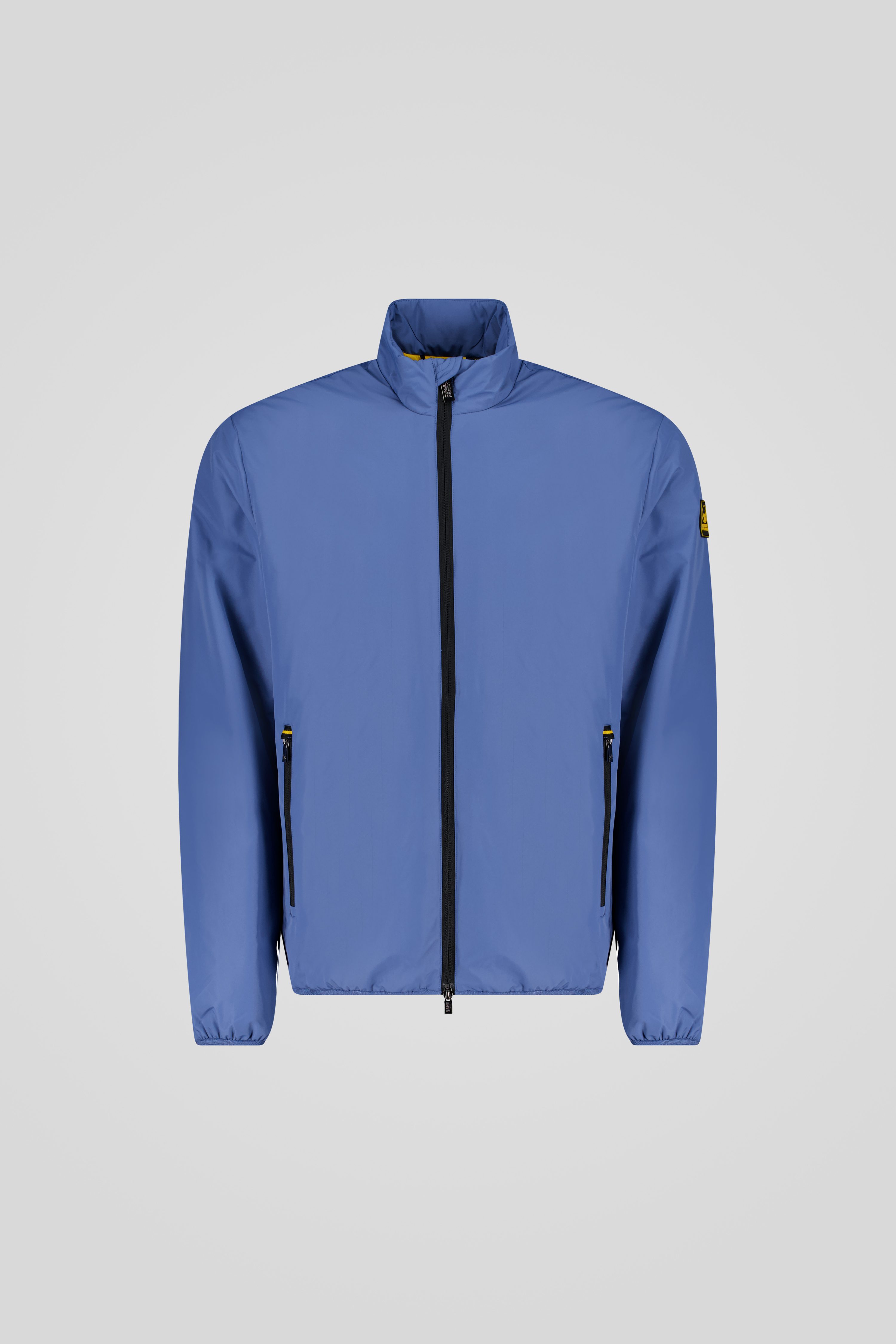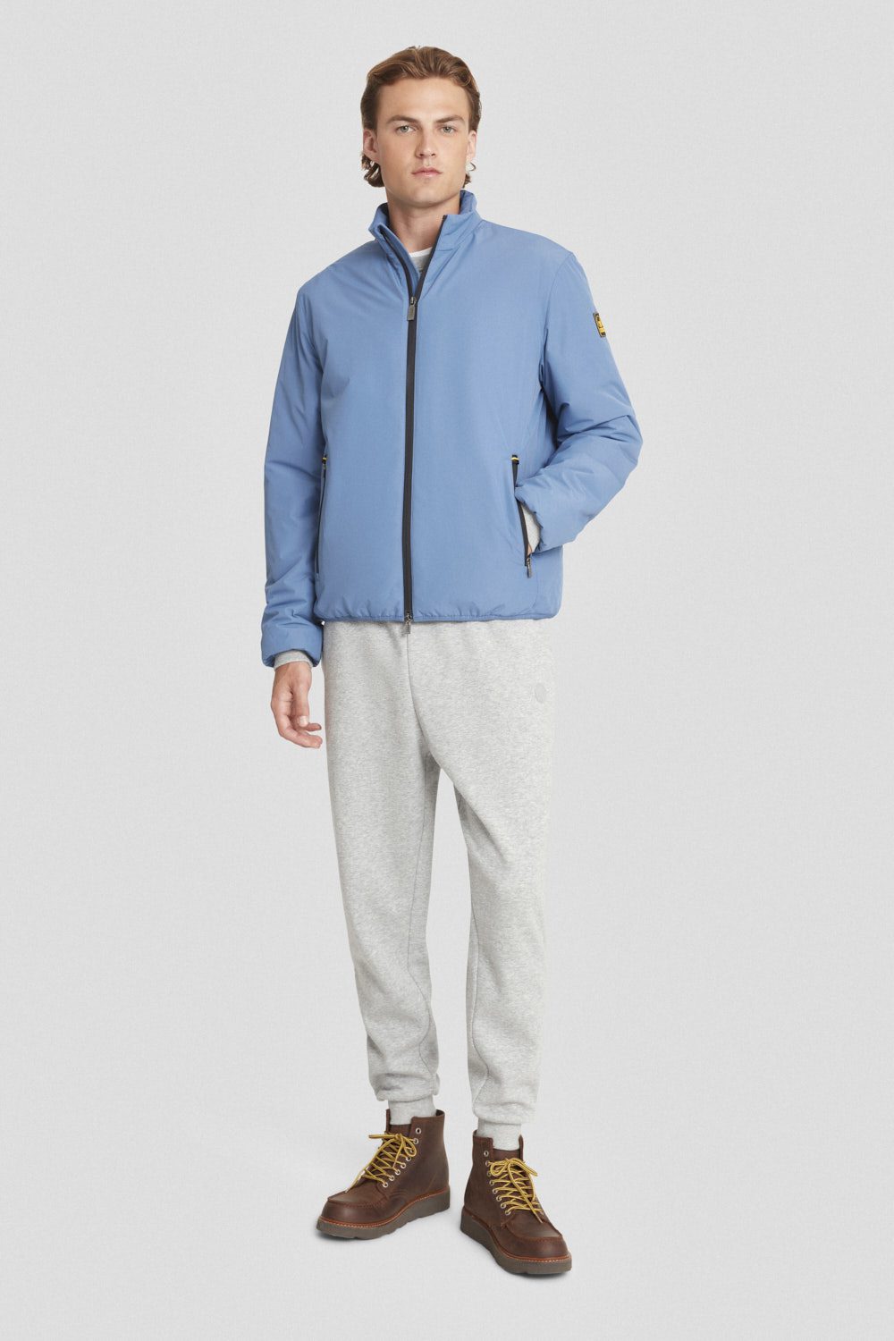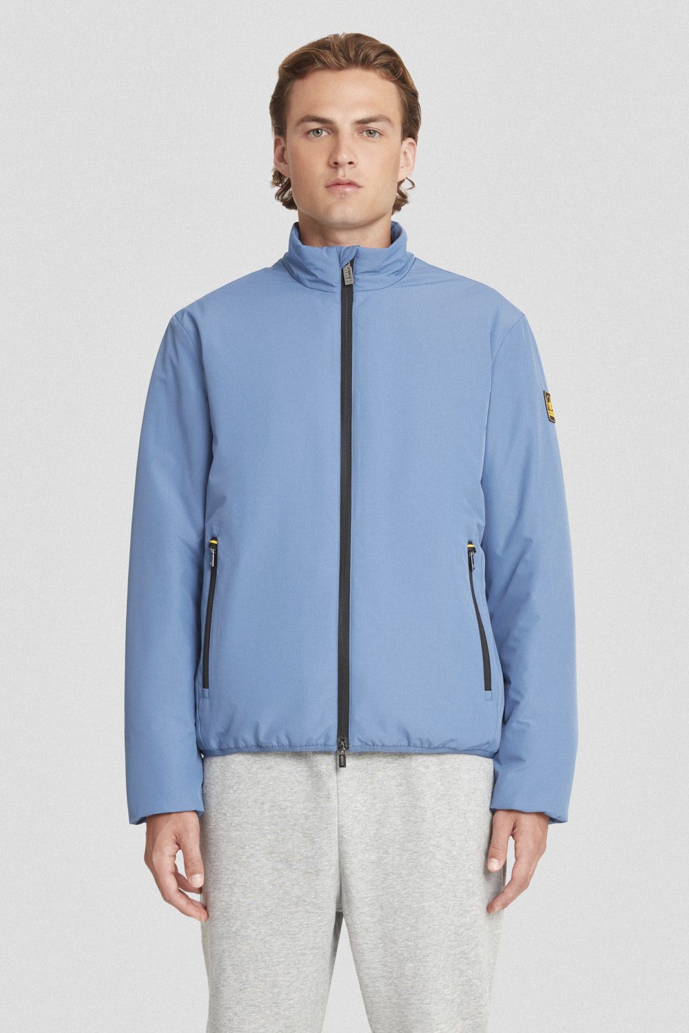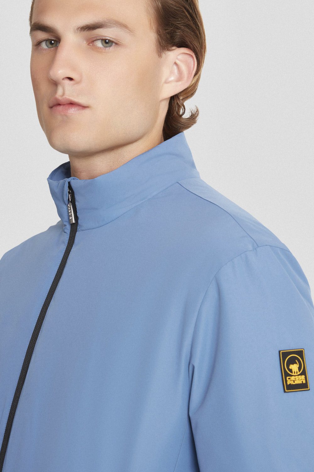 Giacca azzurra da uomo in stile biker, versatile e adatta a diverse stagioni.
