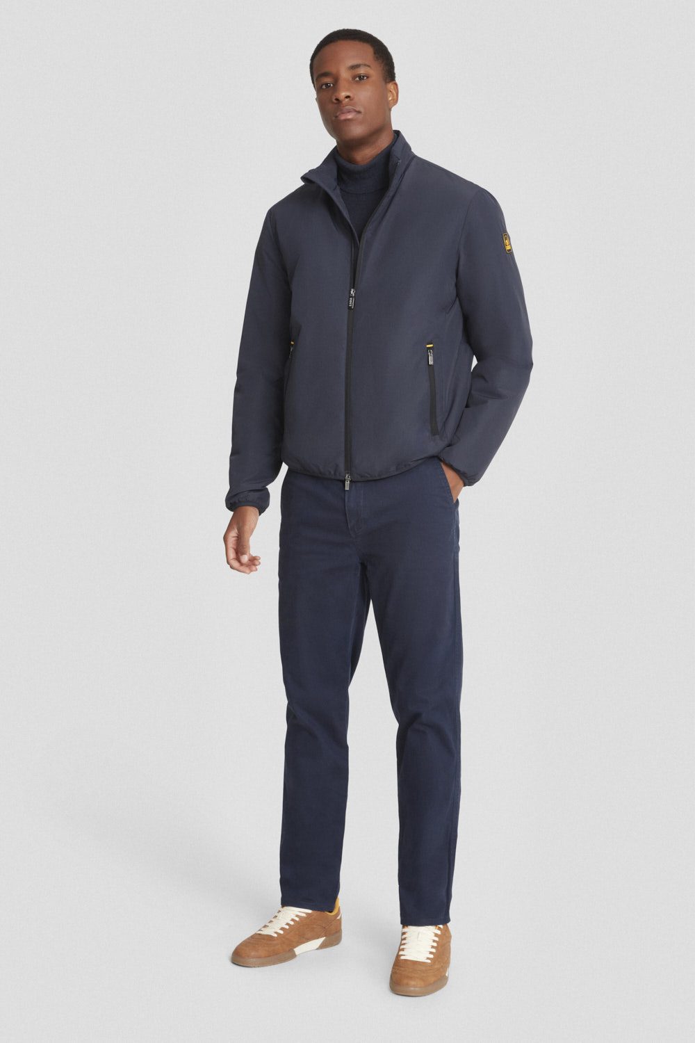 Un capo sportivo, valorizzato da una fodera interna bicolore: tono su tono sul davanti e gialla sul retro, dettaglio iconico dell’identità di Ciesse Piumini.