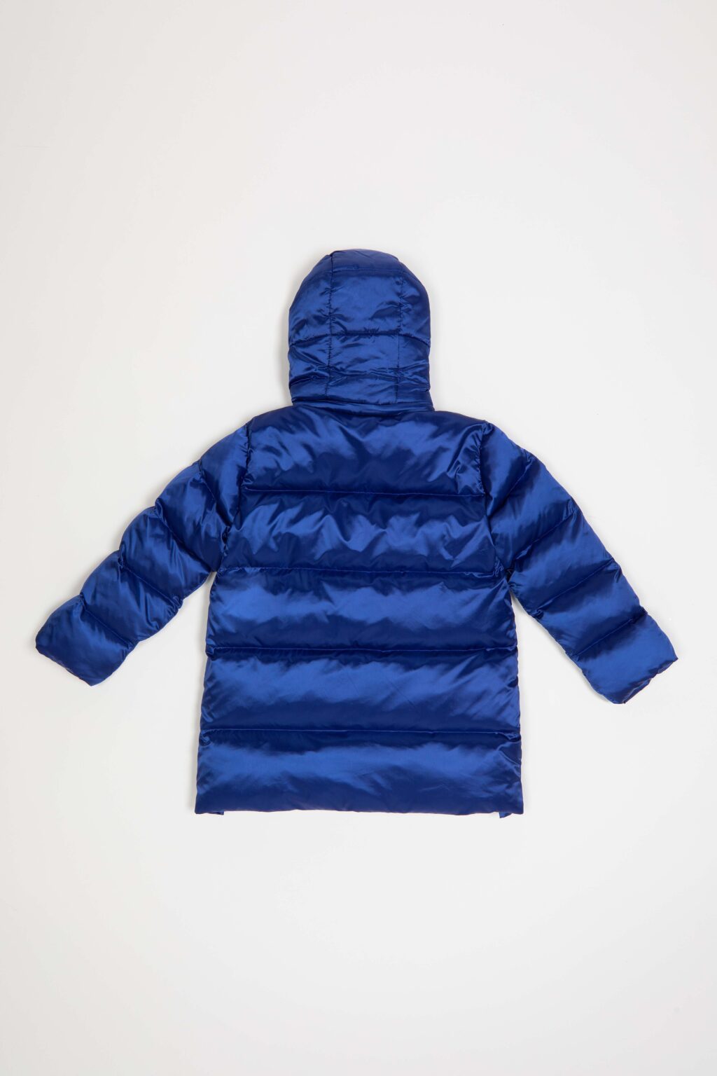 NINFA GIRL – Piumino lungo blu elettrico in tessuto nylon effetto metallico caratterizzato da grandi maxi filze, cappuccio removibile ed imbottitura ecologica. Questo capo si contraddistingue per la sua linea svasata, che puo’ essere maggiormente ampliata aprendo le due lunghe zip laterali sul findo. Il tessuto nylon lucente e molto piacevole al tatto, le zip metalliche ed il volume moderno contribuiscono a valorizzare il capo, adatto alle più attente allo stile già da piccole.