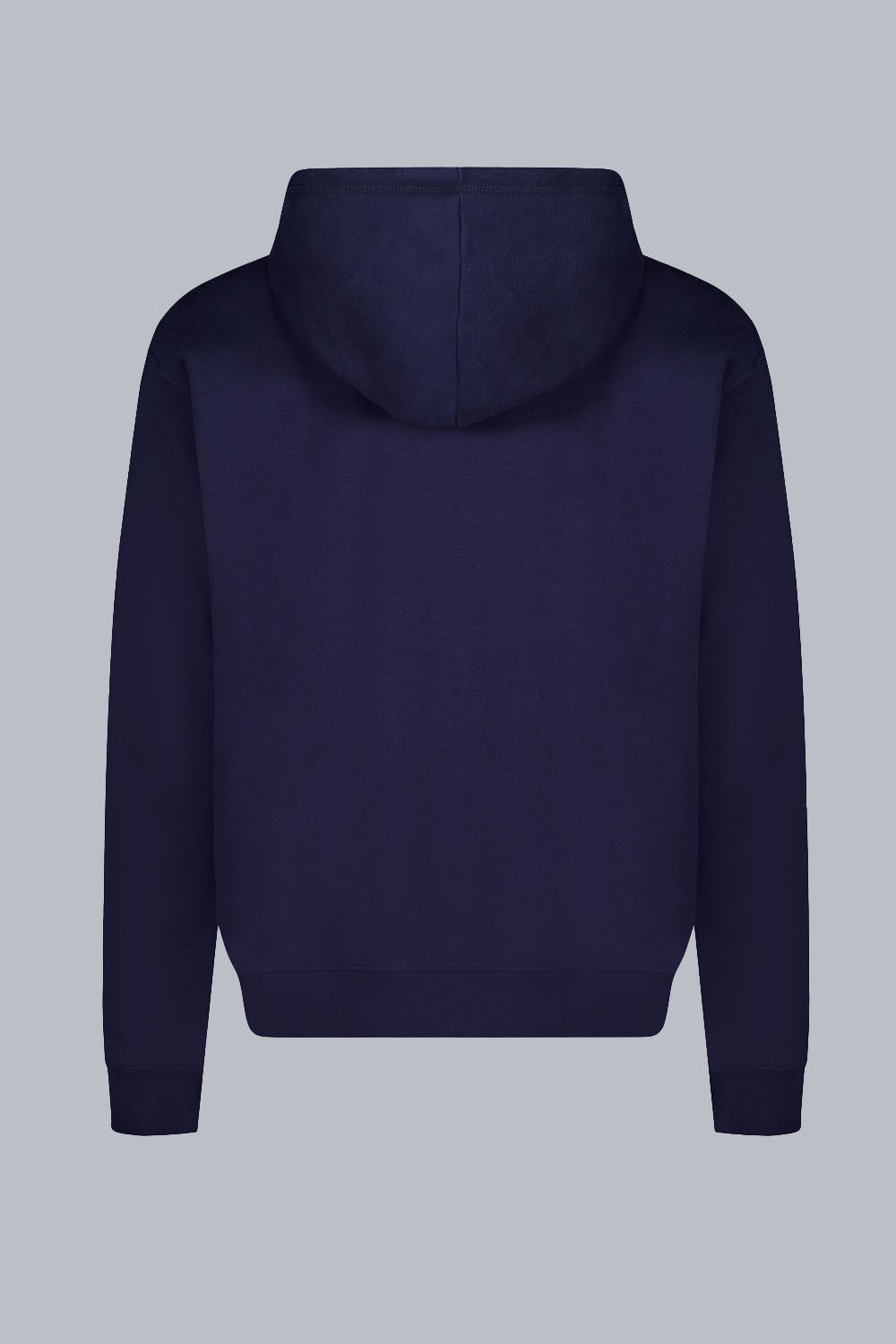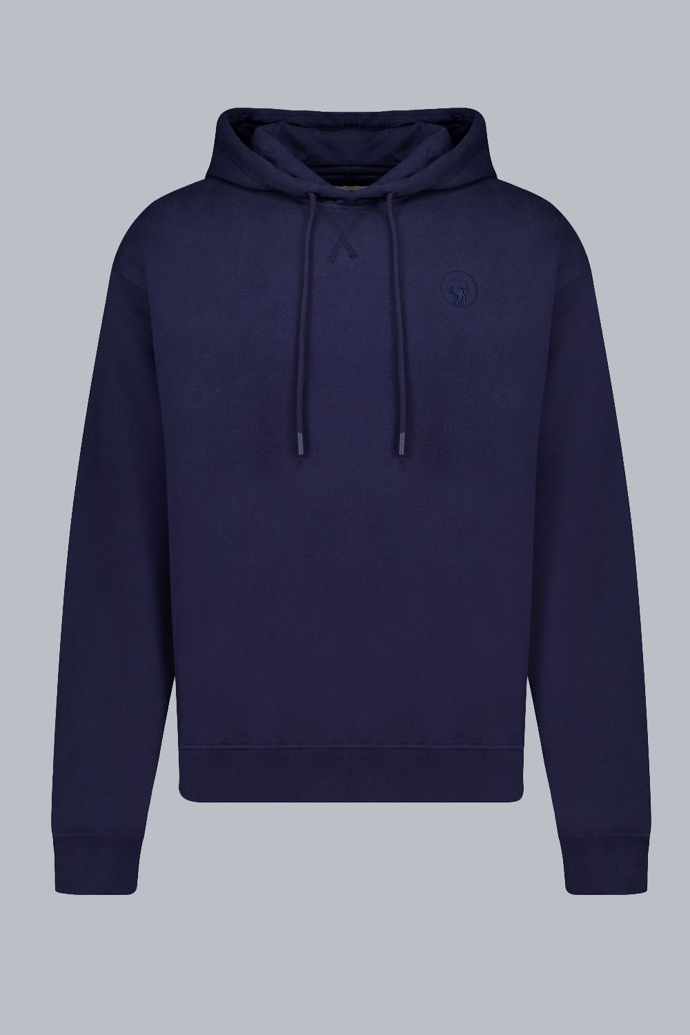 Felpa da uomo in colore blu in morbido cotone con cappuccio e coulisse regolabile in tono.